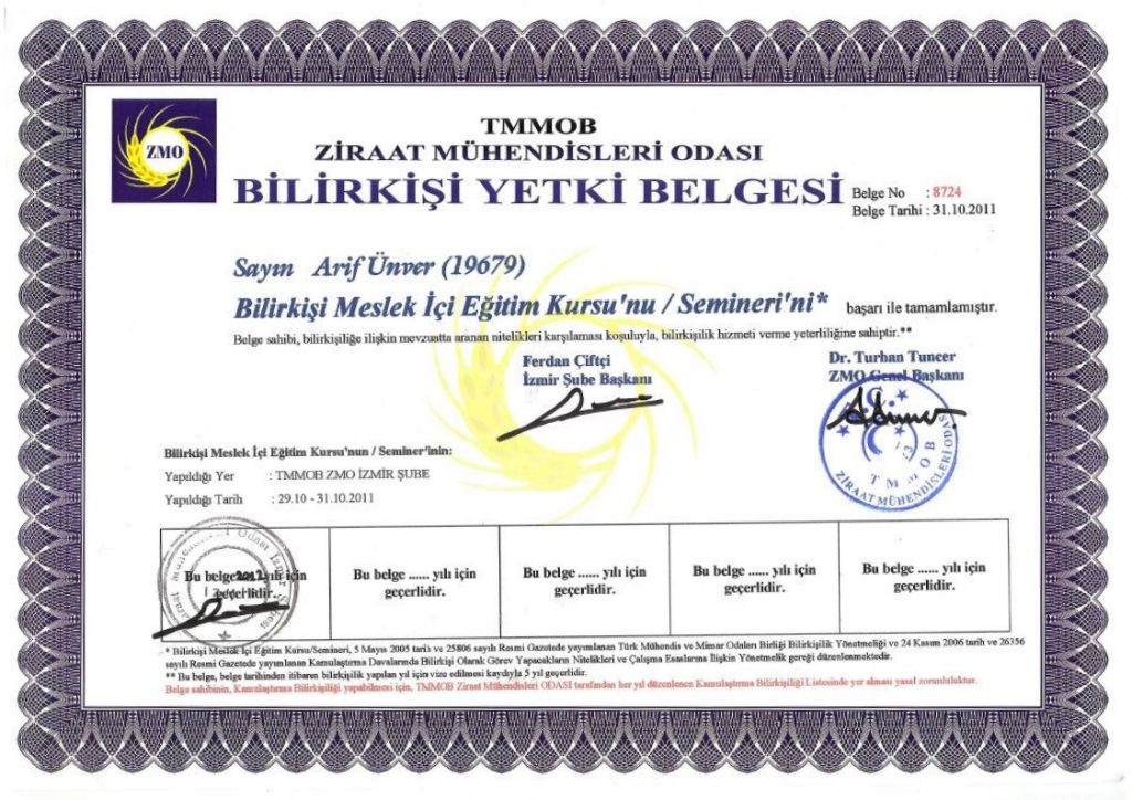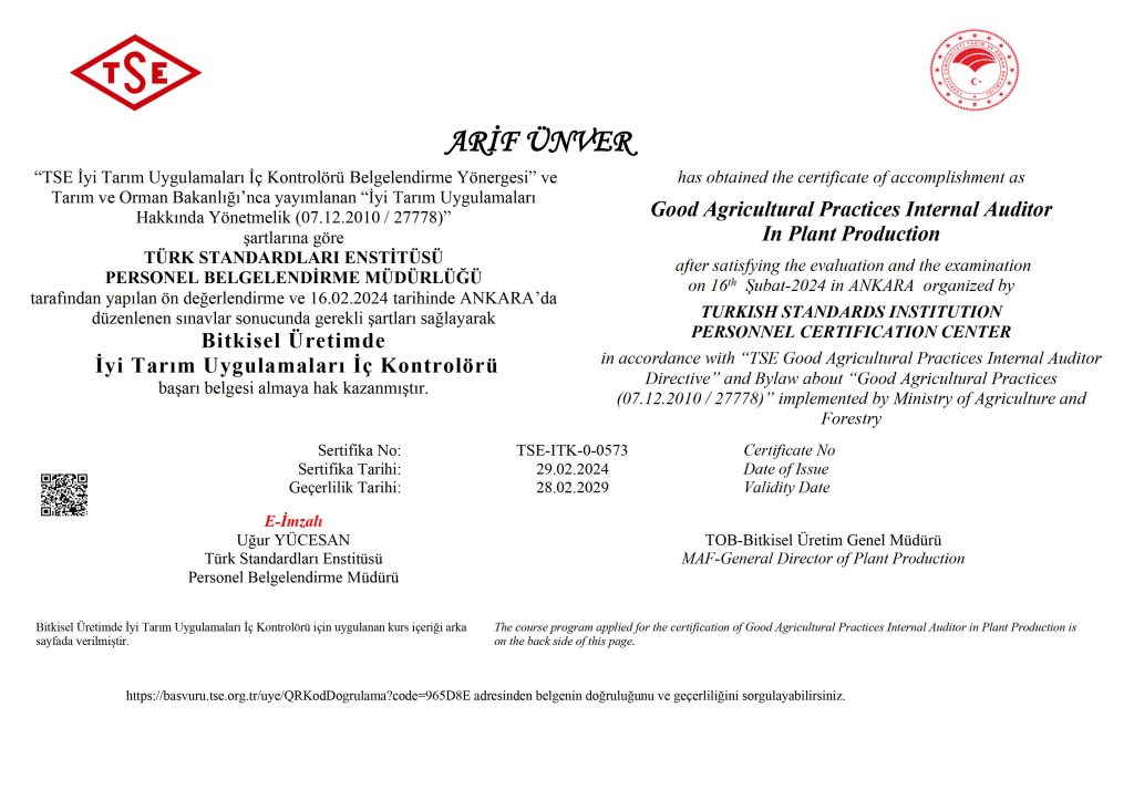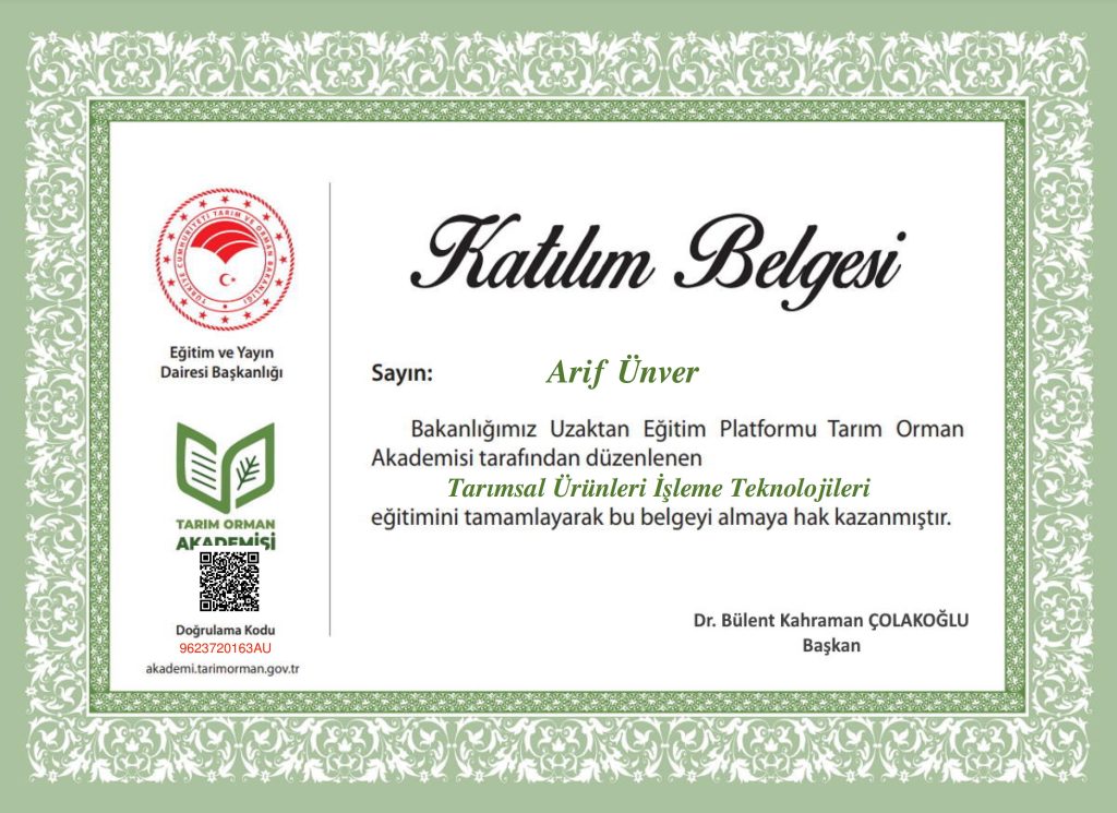 Tarımsal Ürün İşleme Eğitim Belgesi